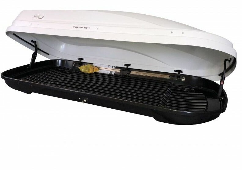 Installation: on the roof, volume: 390 l, boxing type: rigid, opening method: two-sided, sports equipment transportation: skis, snowboard, number of pairs of skis: 9, maximum load length: 175 cm, number of snowboards: 4, load capacity