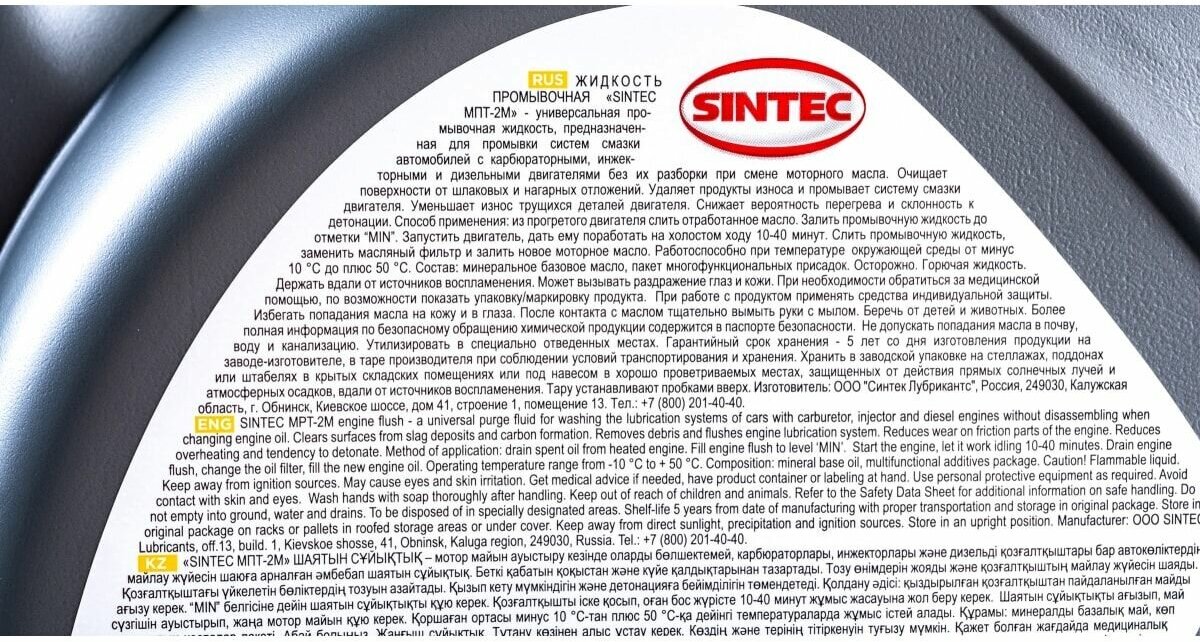 Type: flushing oil, area of application: engine, action: cleaning engine parts, cleaning the intake system, increasing the life of the hydraulic system, increasing the life of the engine