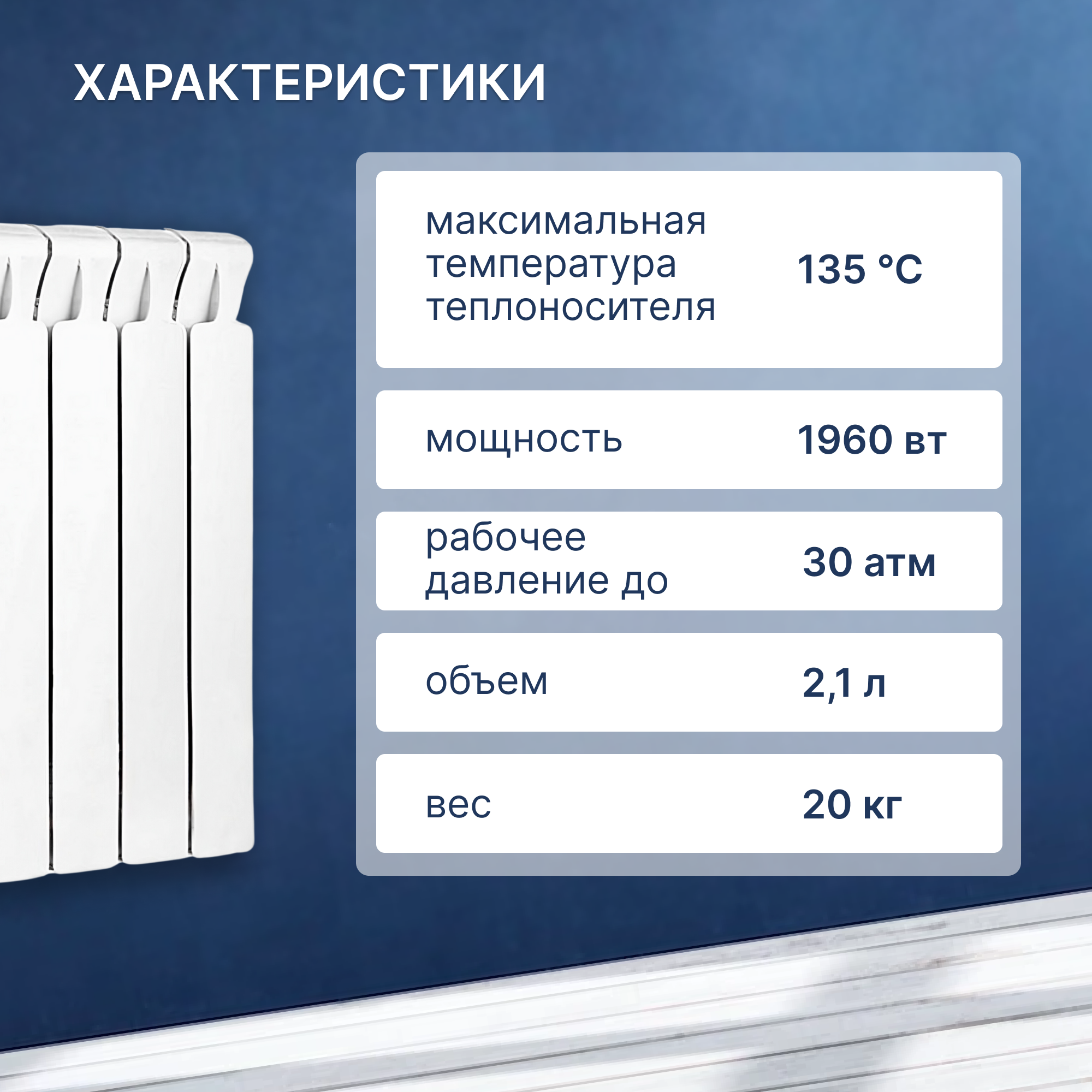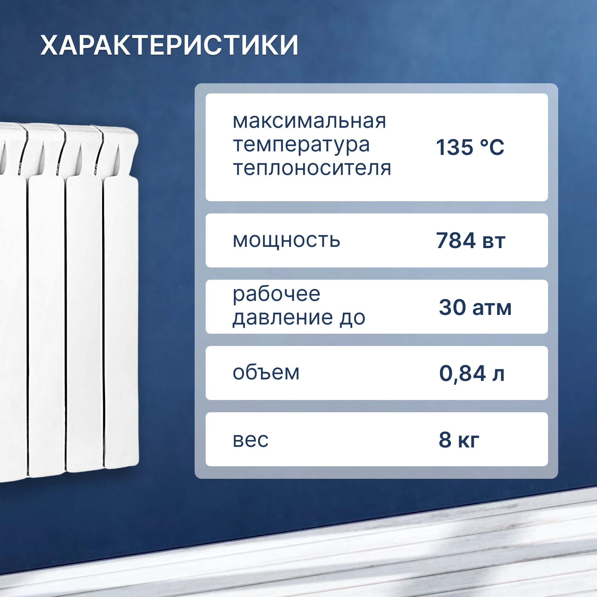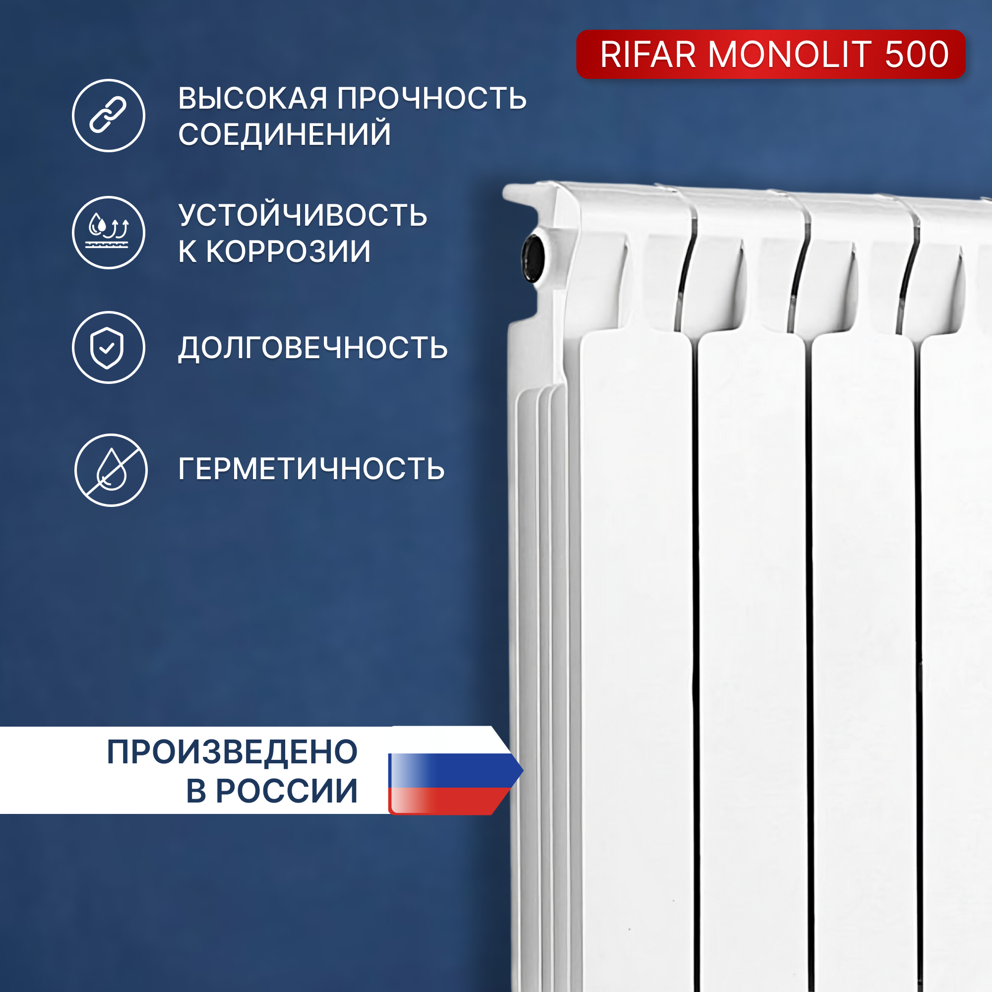 Material: bimetal, construction: wall-mounted, center distance: 500 mm, type: sectional