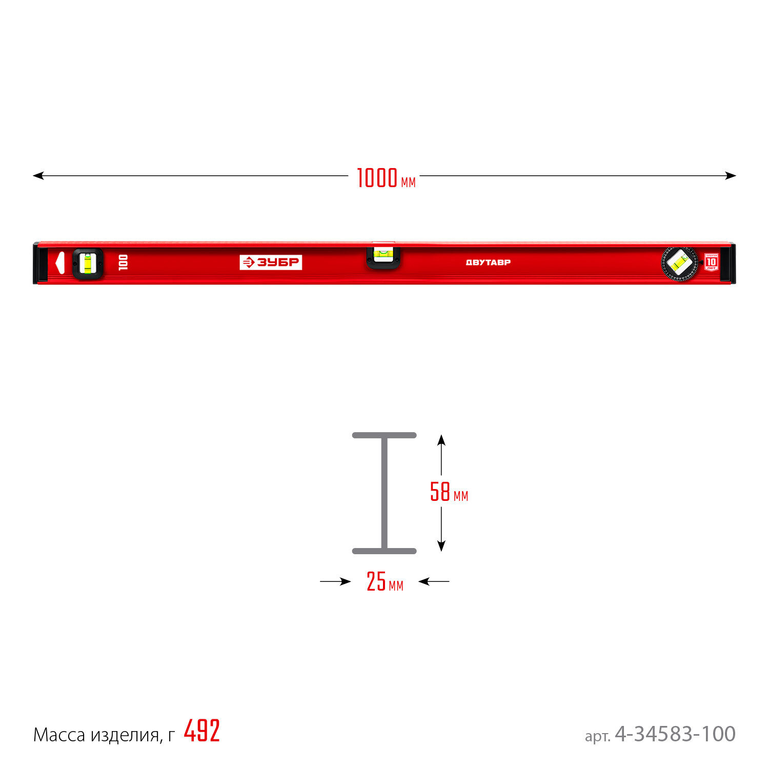 BISON 1000 mm, Reinforced I-beam level 4-34583-100