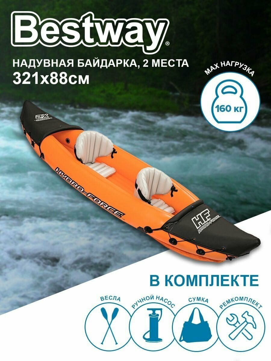 Type: kayak, control type: rowing, seating method: inside the sit-in hull, number of places: 2, load capacity: 160 kg, material: PVC, width: 88 cm, length: 321 cm, design: inflatable