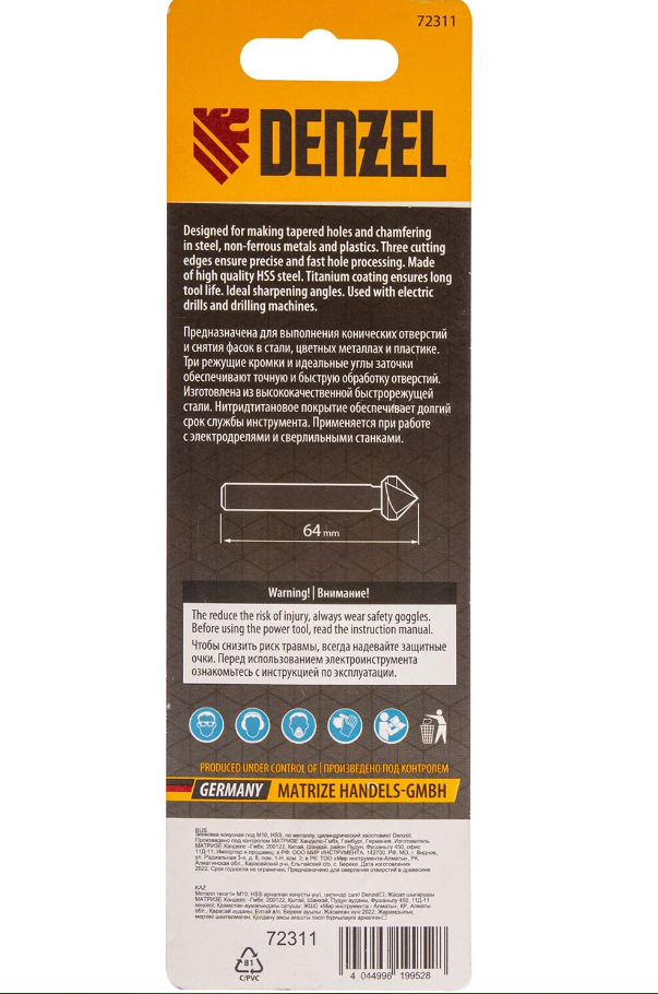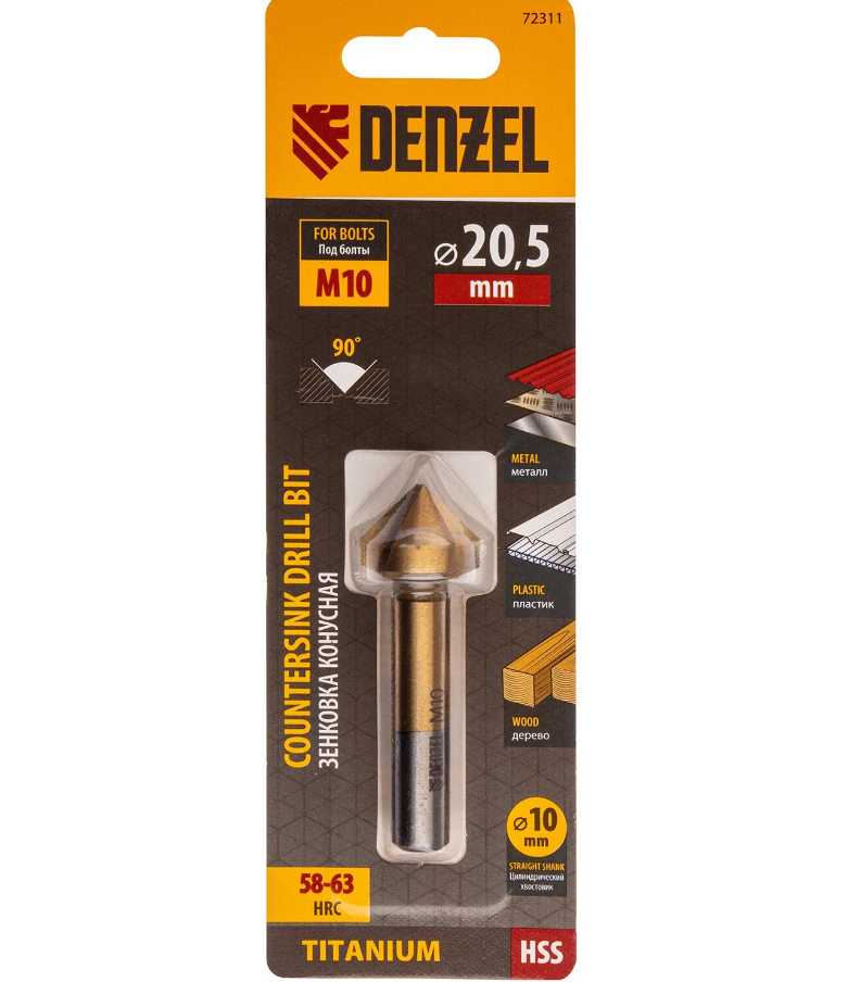 Conical countersink for M10, HSS, for metal, cylindrical shankDenzel 72311