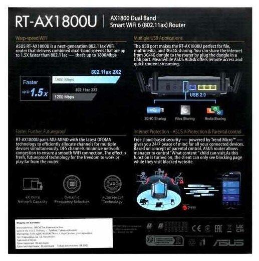 Airtime Fairness, AiProtection, IPTV support, Beamforming, OFDMA, DualWAN