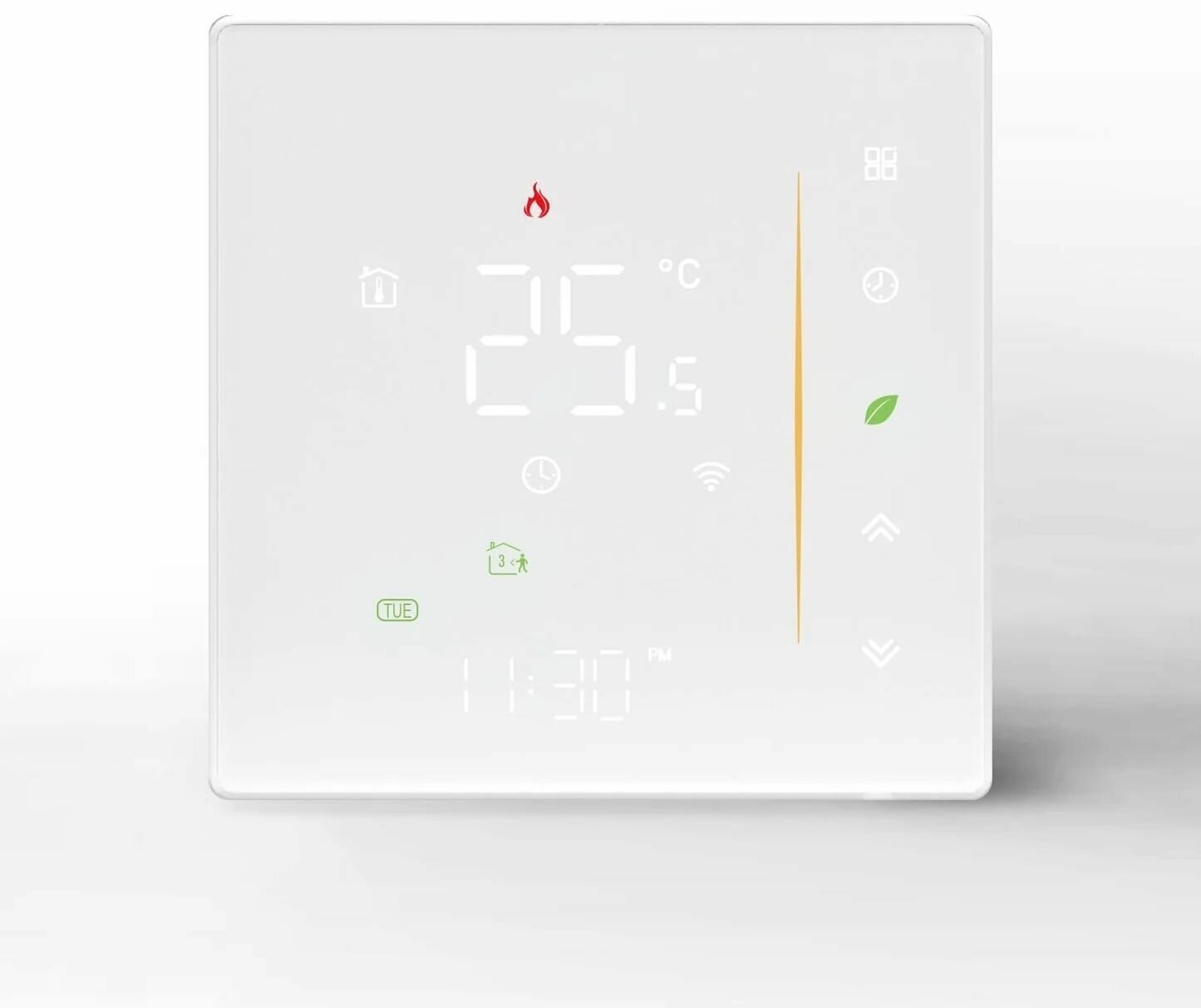 Control type: touch, maximum load: 3600 W, minimum temperature: 5 °C, maximum temperature: 45 °C, connection to a smartphone, heated floor temperature control, communication type: wireless, programmable