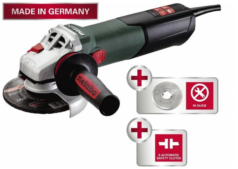 Type of power supply: mains, max. disc diameter: 125 mm, design features: power button lock, additional handle, spindle lock, power consumption: 1450 W, max. disk speed: 11000 rpm, weight