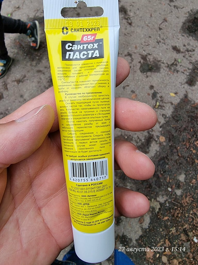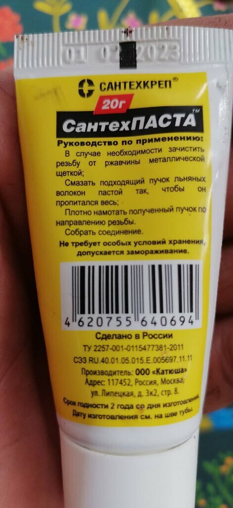 Type: paste, purpose: hot water, heating antifreeze, drinking water, compressed air