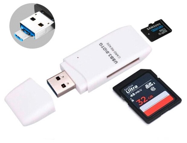 USB 3.0 Card Reader/W Mini SDXC/SD3.0/SDHC/microSD/T-Flash CR-018W, OTG support, microUSB, white