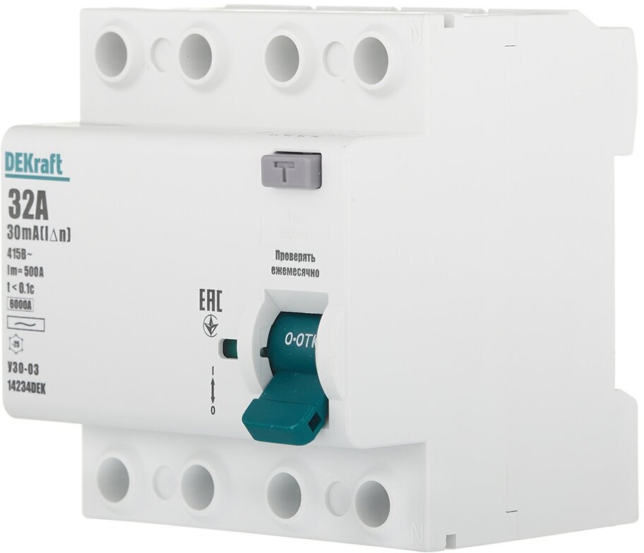 RCD DEKraft RCD-03 30mA type AC 6kA 4 poles