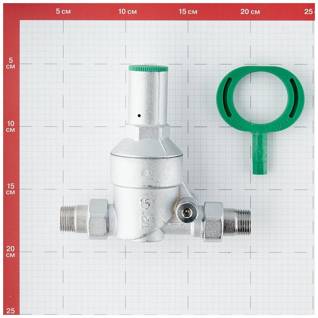 Type: pressure reducer, valve opening/closing type: automatic, body material: brass, connection type: coupling male/male, conditional pressure: PN 25, diameter: DN 15 1/2"