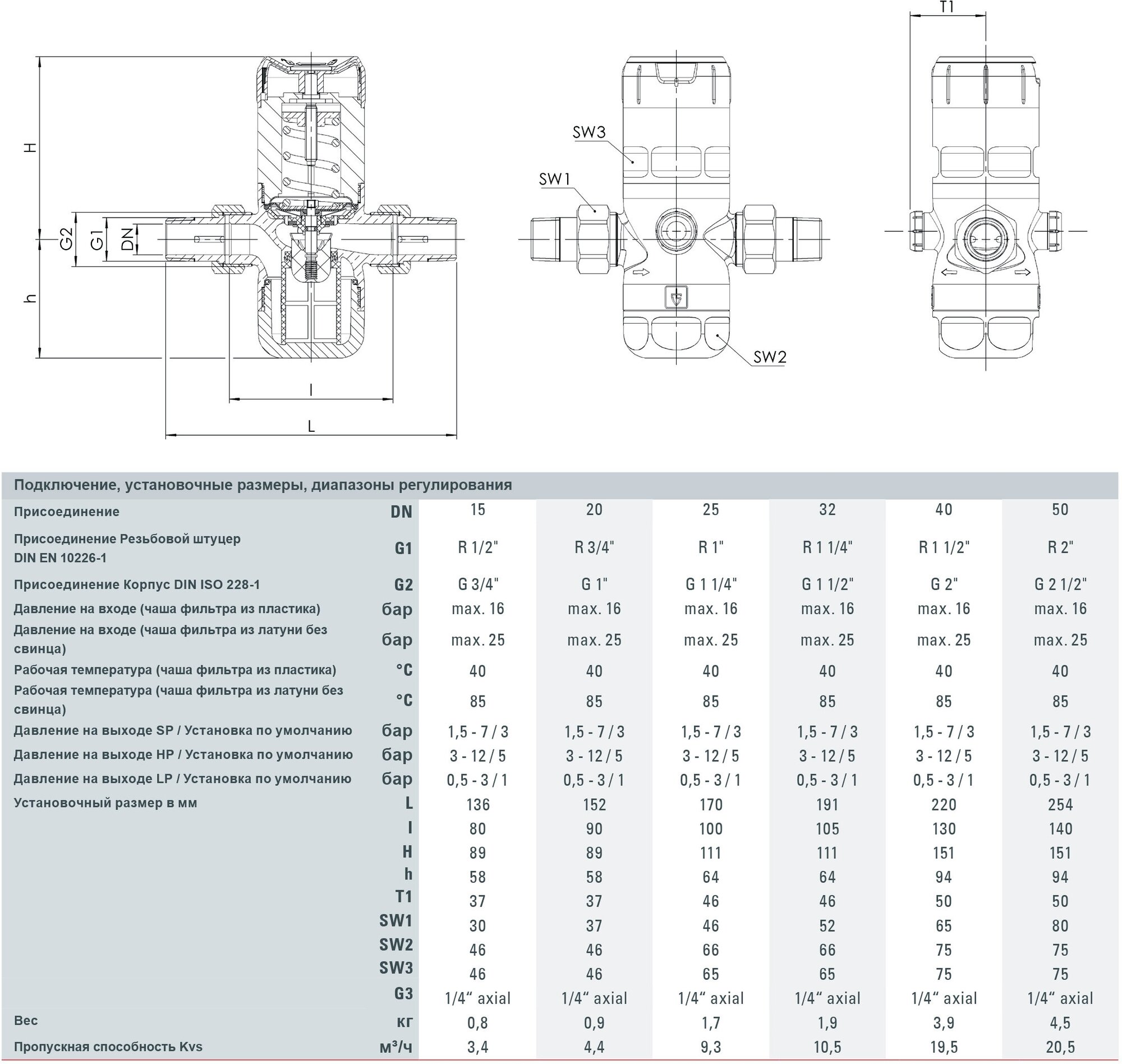 Type: pressure reducer, body material: brass