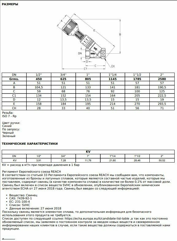 Type: Plumbing valve, maximum capacity: 7.30 m³/h, diameter: DN 20 3/4"