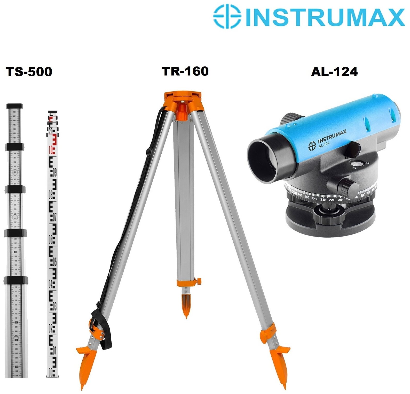 Set Optical level INSTRUMAX AL-124 + Telescopic leveling rod INSTRUMAX TS-500 + Aluminum geodetic tripod INSTRUMAX TR-160