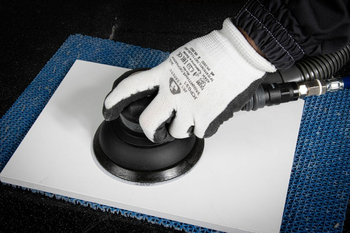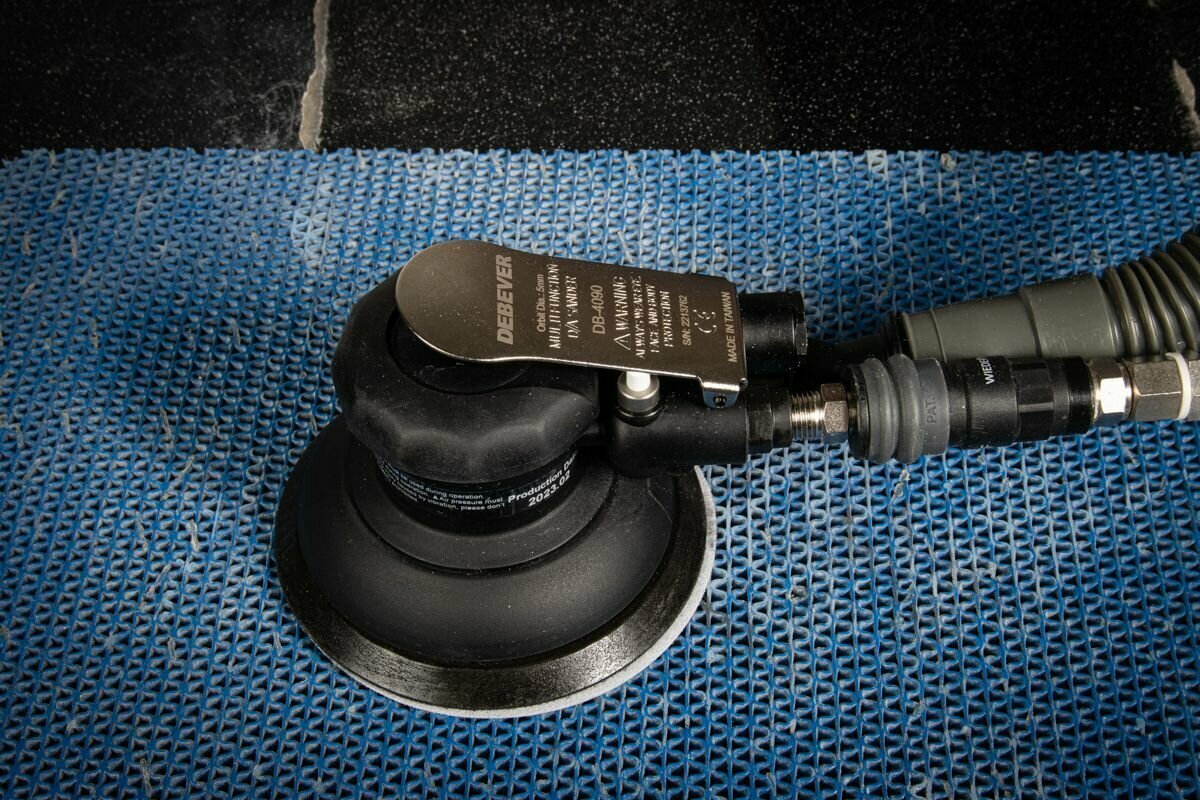 Rotor-orbit. pneumatic DEBEVER sander with 125 mm bag; orb. stroke 5.0 mm; 44 holes