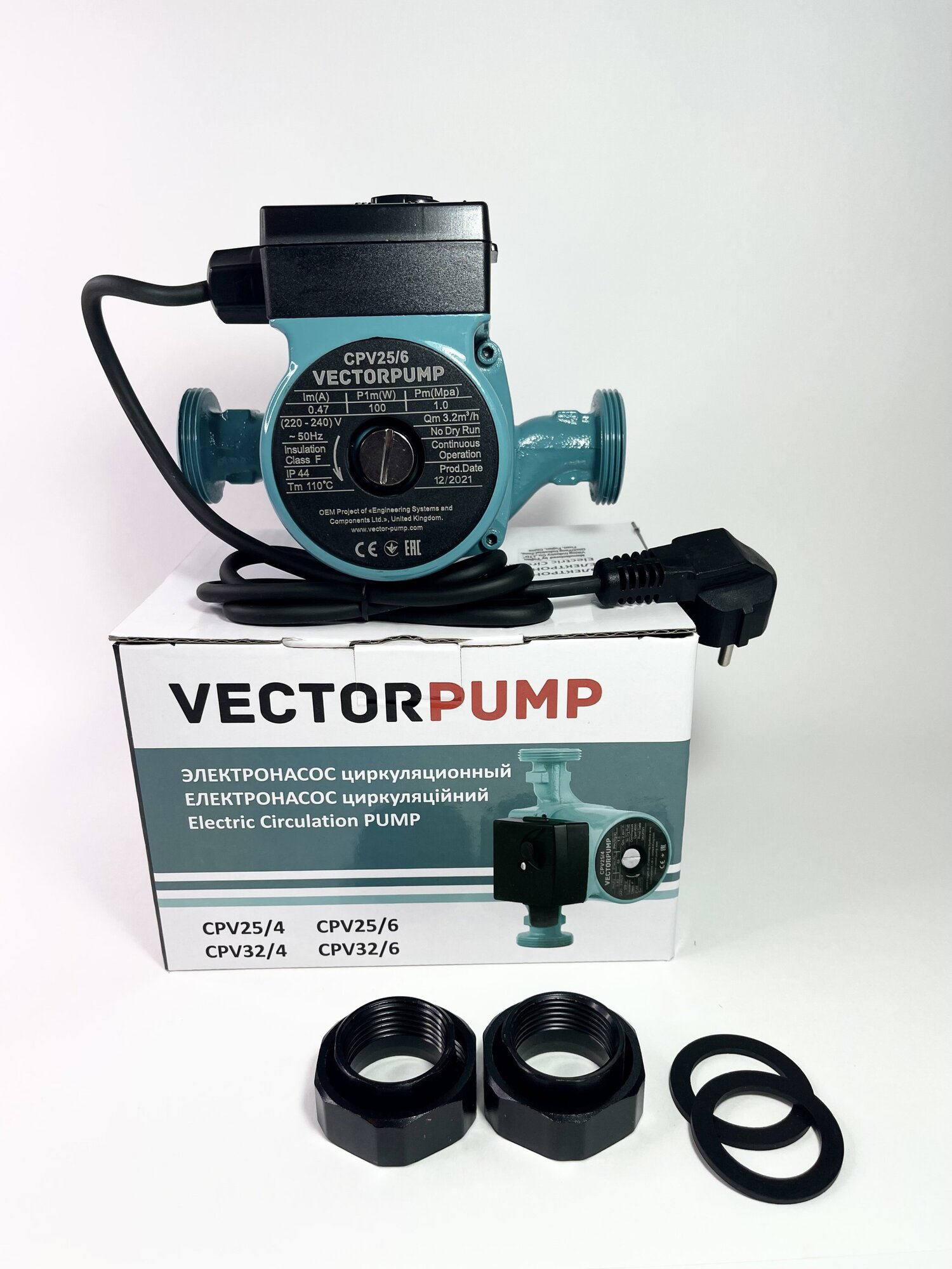 Circulation pump Vector Pump CPV25/6, pressure booster pump / set: cable with plug and nuts