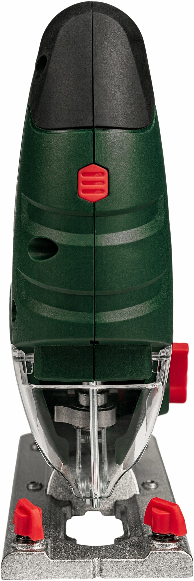 Power type: mains, power: 850 W, functions: pendulum stroke, soft start, stroke frequency adjustment, speed stabilization system, design features: ability to connect a vacuum cleaner, protective shield, laser