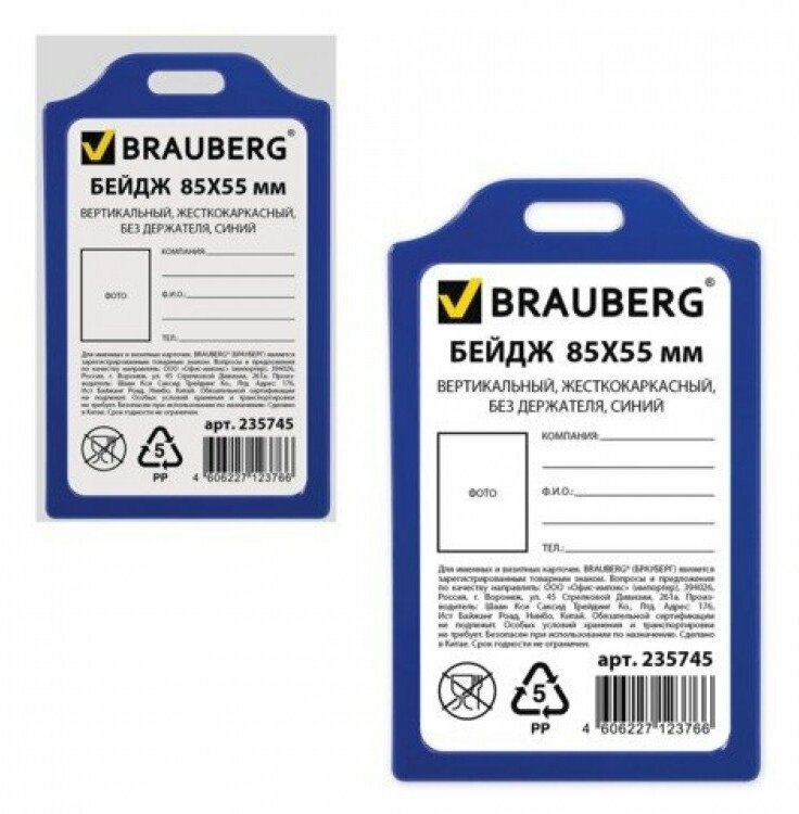 Badge BRAUBERG 235744-235748 101x61 mm