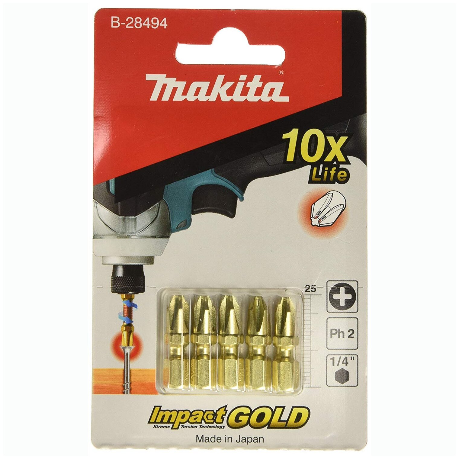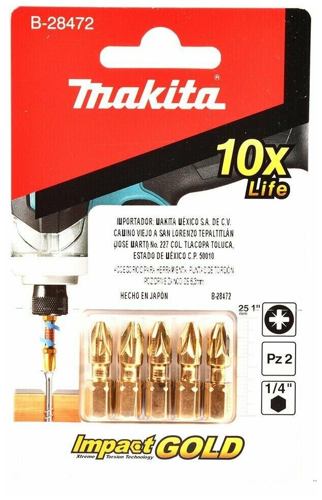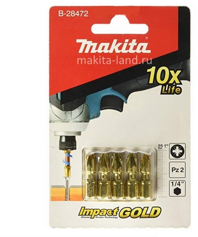 Bit Impact Gold PZ2, 25 mm, C-form, 5 pcs Makita B-28472
