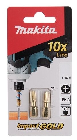 Bit Impact Gold PH3, 25 mm, C-form, 2 pcs Makita B-28341