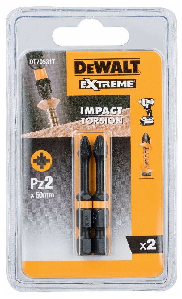 Impact bits IMPACT Torsion Pz2, 50mm, 2 pcs. Dewalt DT70531T 15568465