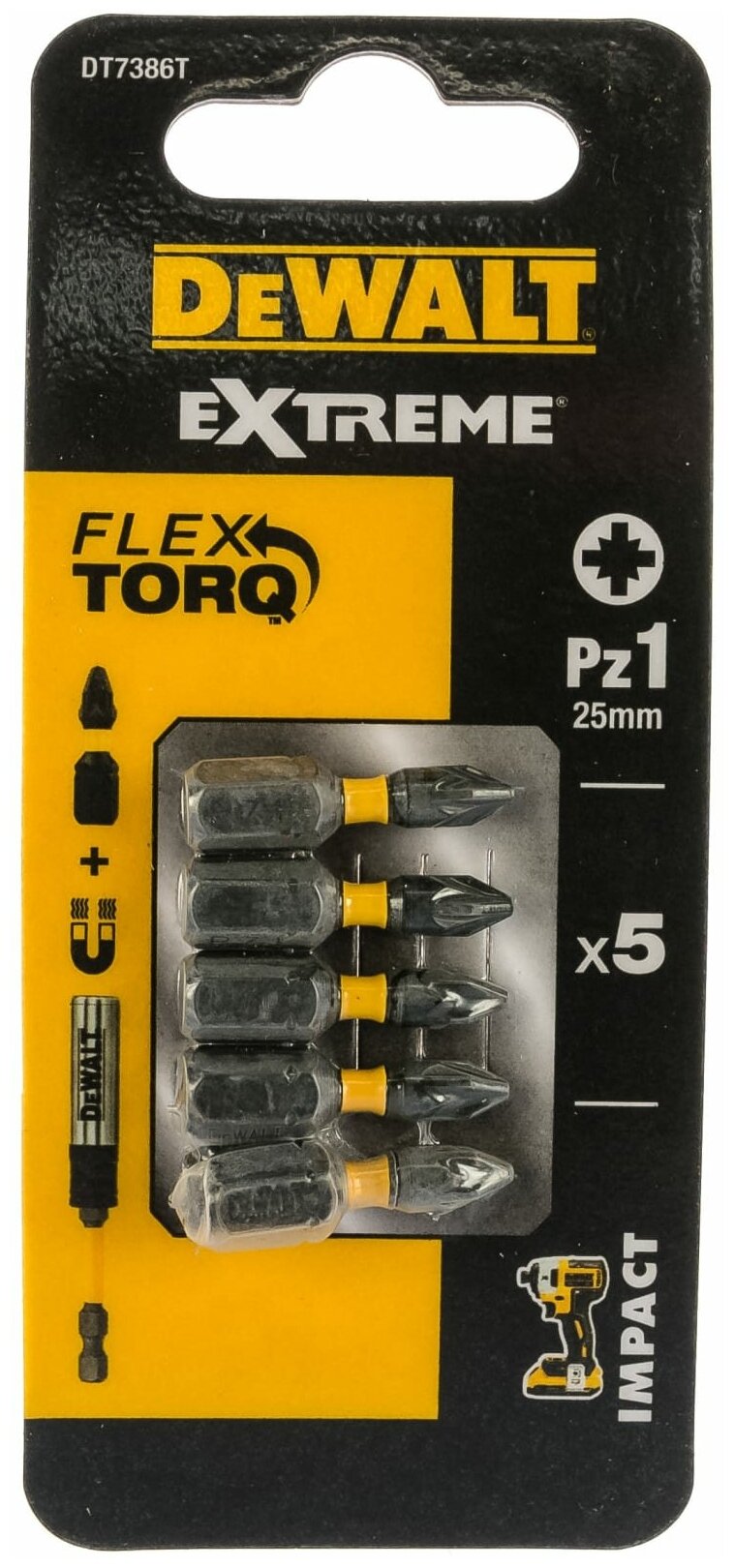 Impact bits DEWALT IMPACT DT7386T, Torsion Pz1, 25 mm, 5 pcs.