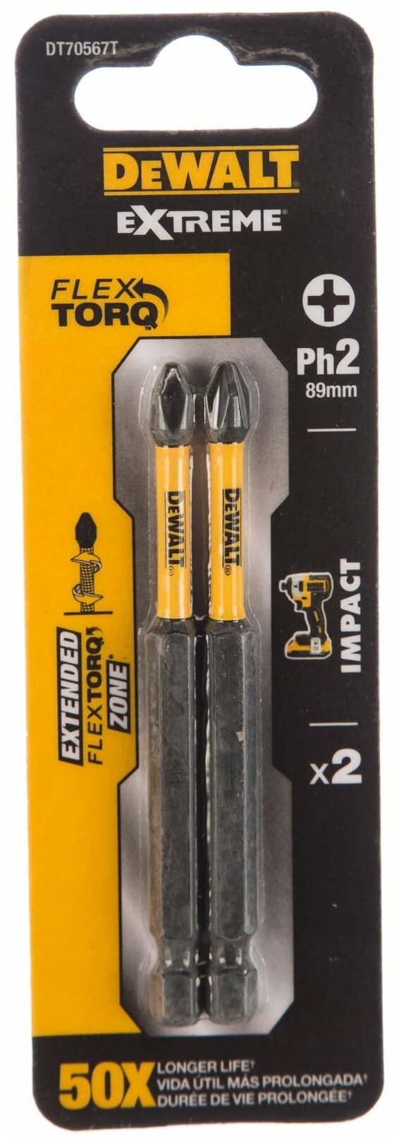 Impact bits IMPACT Torsion Ph2, 89mm, 2 pcs. DEWALT DT70567T pack 2PCS,