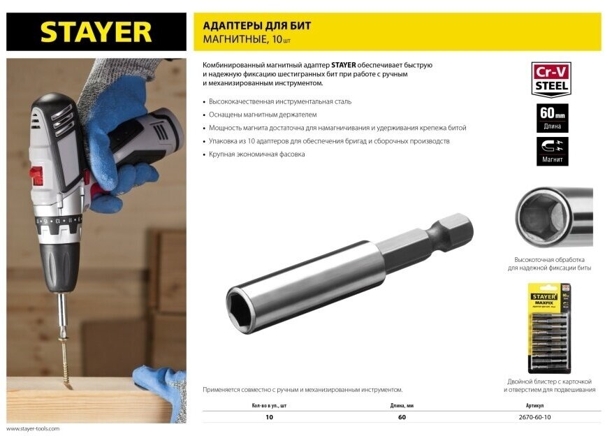 Combined magnetic adapter for bits 60 mm Master Stayer 2670-60 13657357