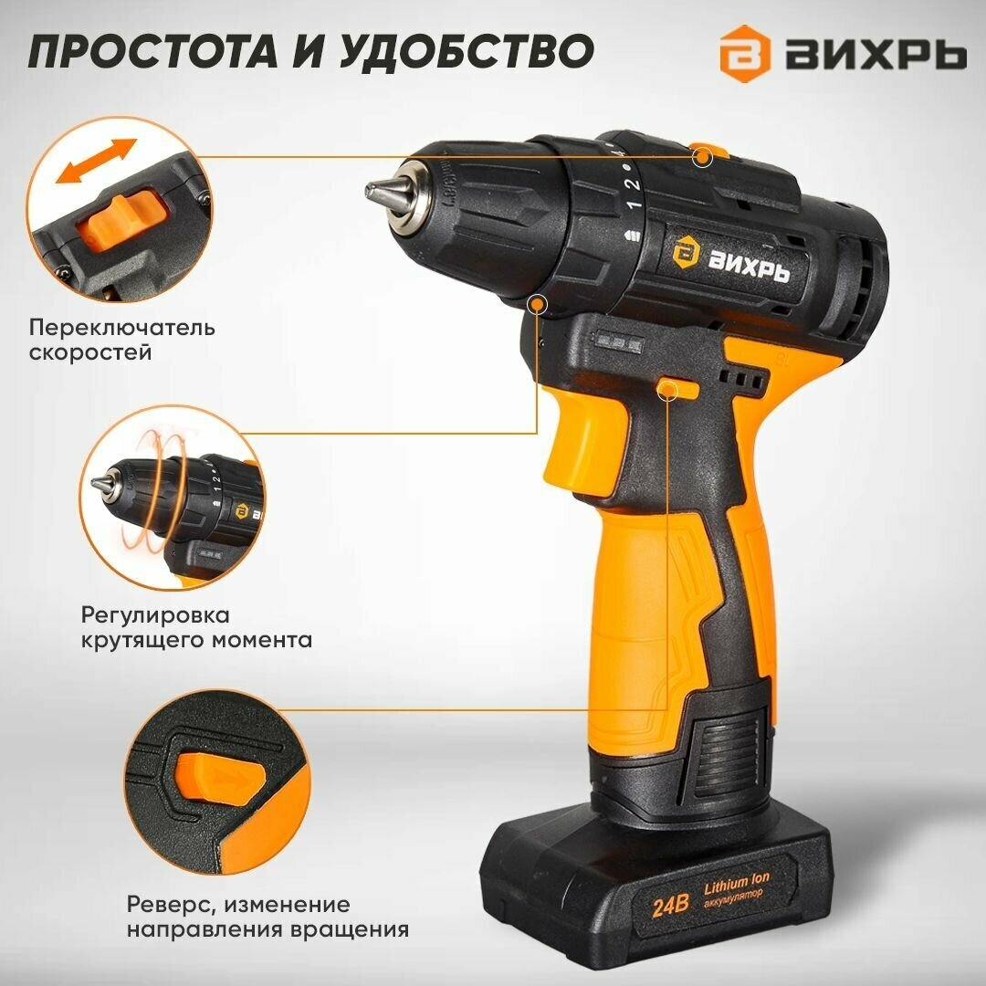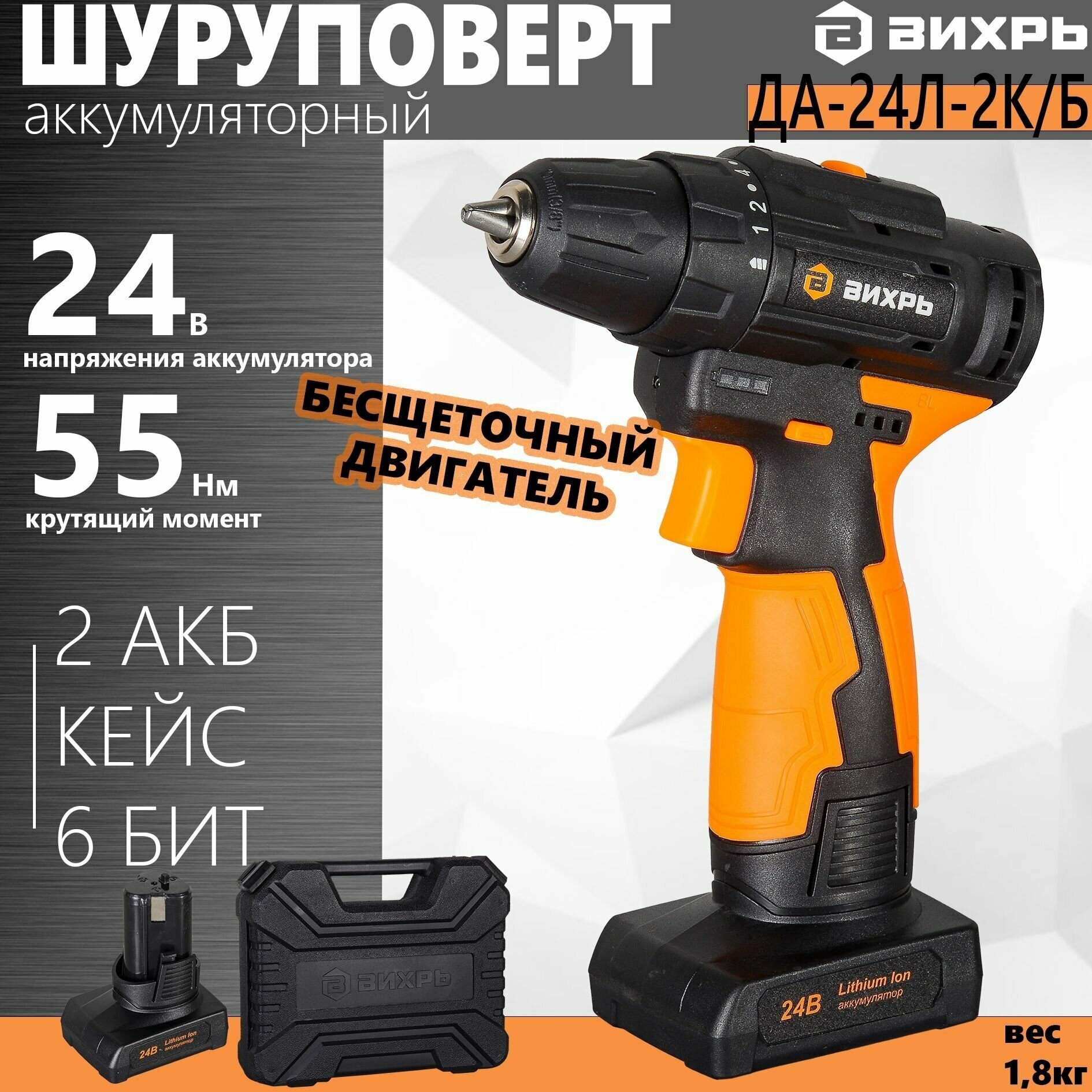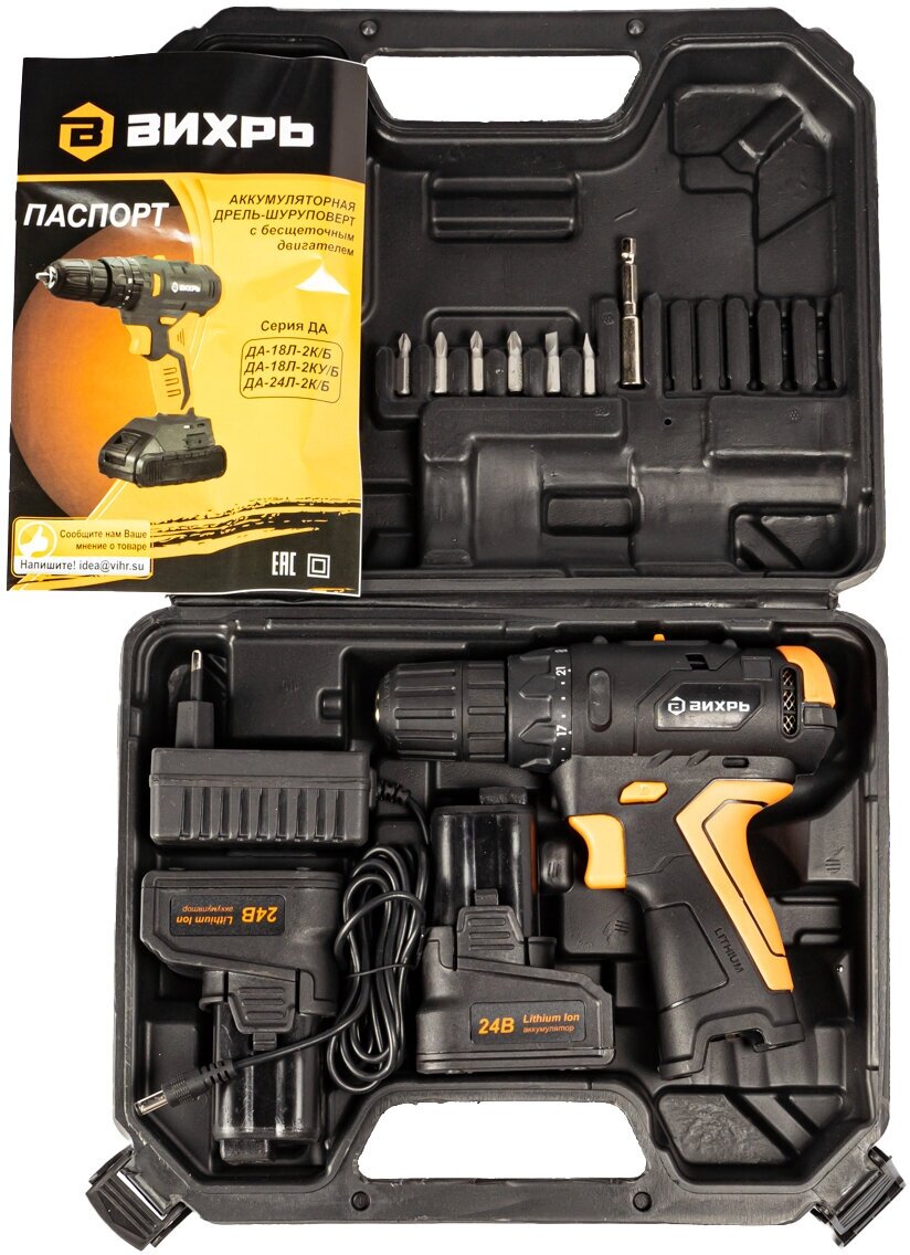 Cordless drill/driver Whirlwind DA-24L-2K/B brushless motor