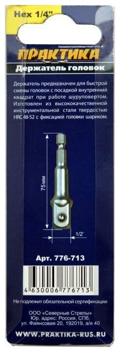Type: adapter, tip shape: hexagon, length: 75 mm