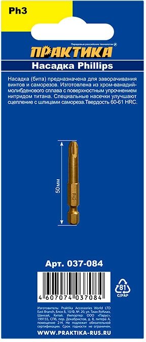 Type: bit, bit type: single ended, tip type: PH3, tip shape: cross, length: 50mm