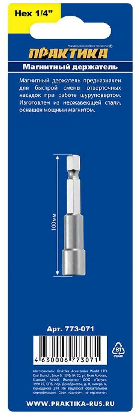 Type: adapter, magnetic adapter, tip shape: hexagon, length: 100 mm