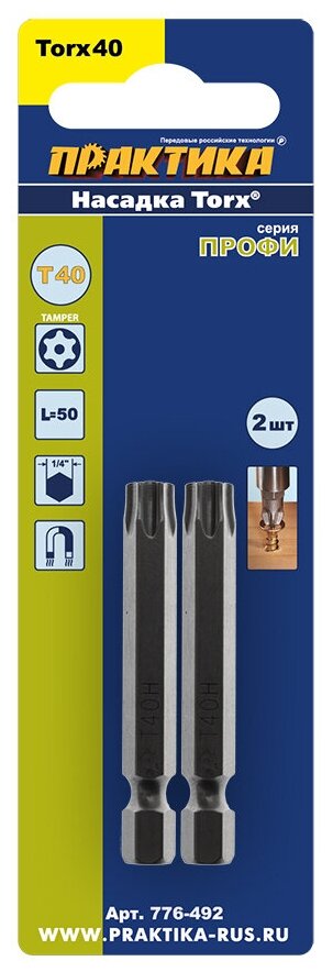 Screwdriver bit PRACTICE Profi Torx Tamper-40 x 50mm 2pcs, blister
