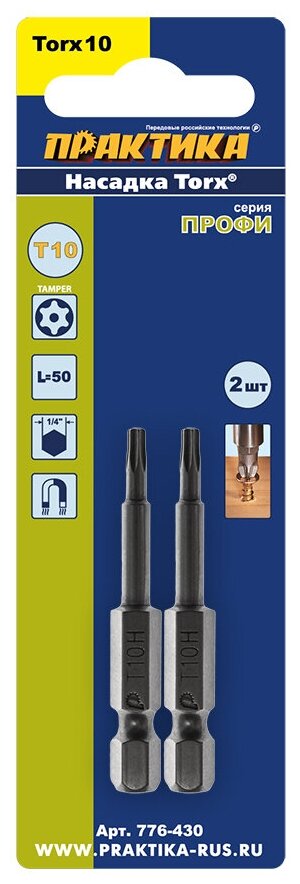 Screwdriver bit PRACTICE Profi Torx Tamper-10 x 50mm 2pcs, blister
