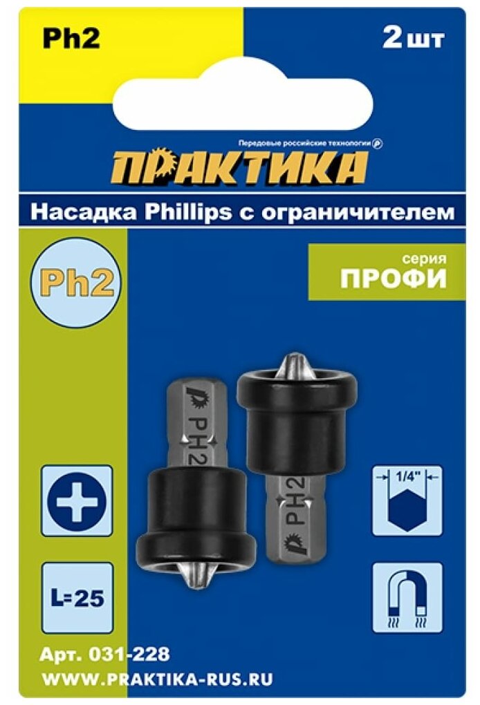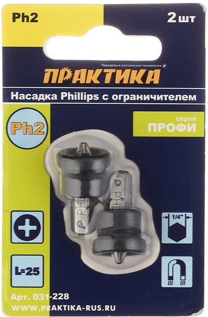 Screwdriver bit PRACTICE Profi PH-2 х 25mm for gypsum board, with limiter, 2pcs, blisterfor gypsum board, with limiter, 2pcs, blister