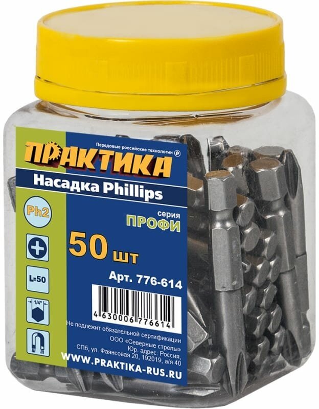 Type: bit, bit type: single-sided, tip type: PH2, PH-2, tip shape: cross, length: 50mm