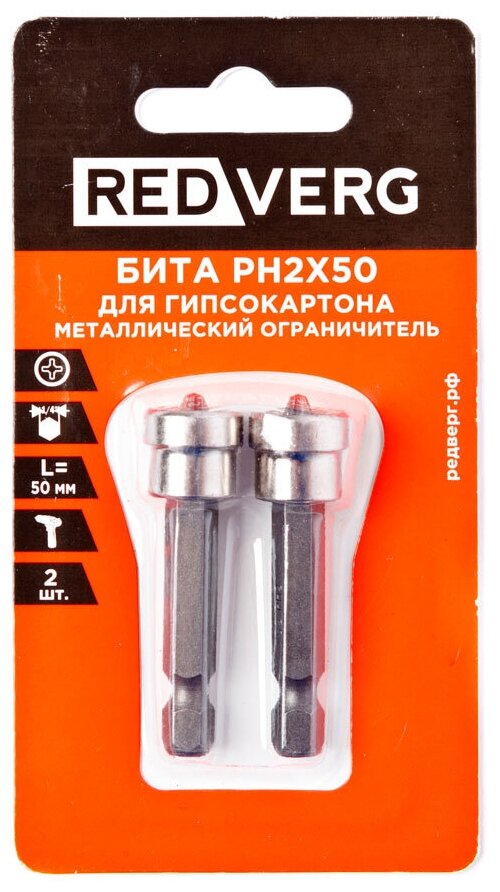 With metal stop for drywall 2 pcs: Ph2: 50 mm REDVERG 6654214 16111567