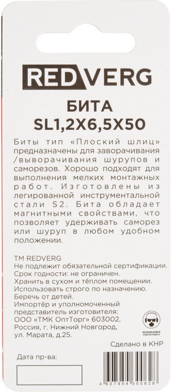 SL1.2x6.5 mm, 50 mm, 2 pcs. REDVERG 6623487 15984864