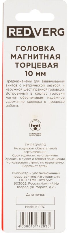 With Redverg socket hex 1/4' 10x65 mm 720731