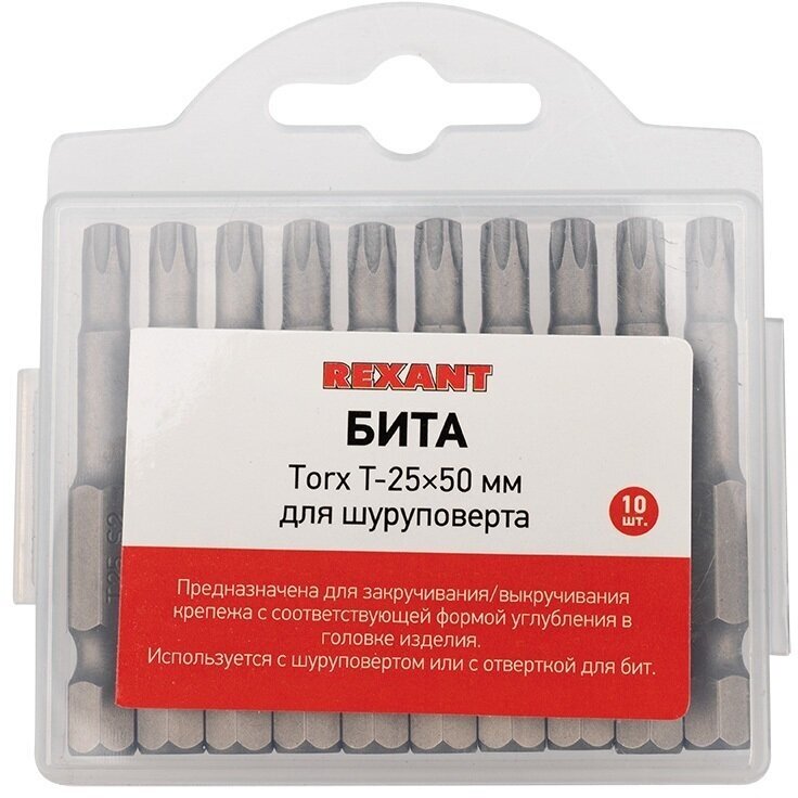 REXANT Torx T-25x50 hex bits for S2 hardened steel screwdrivers, 10 pcs/pack