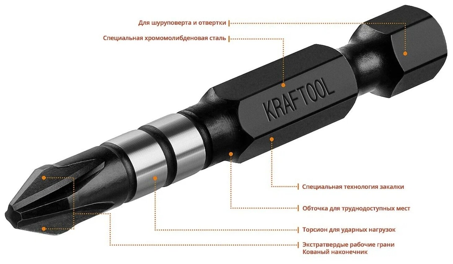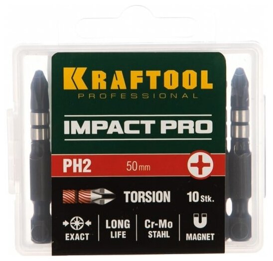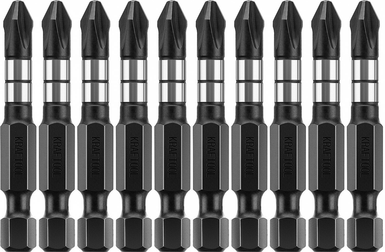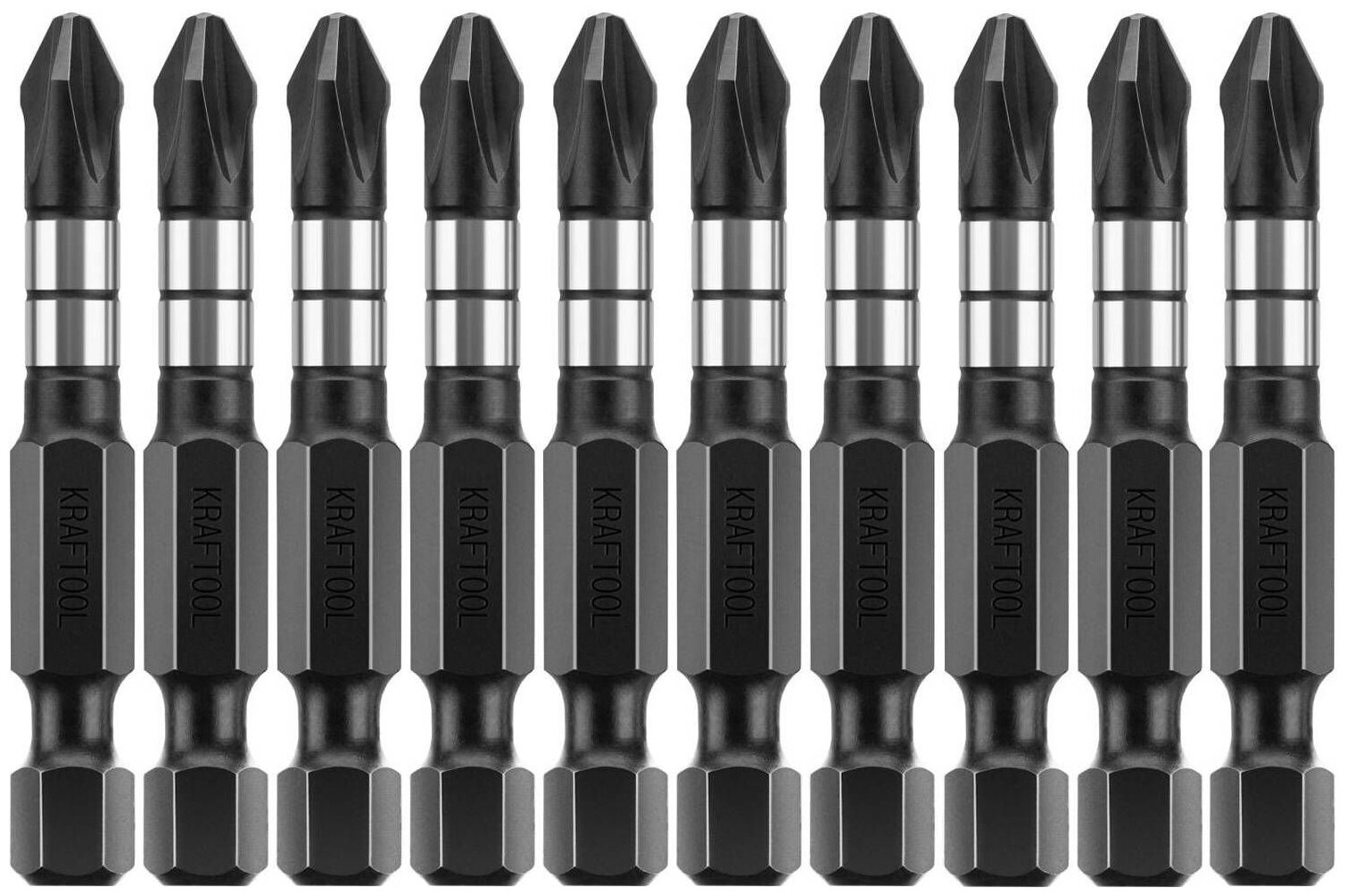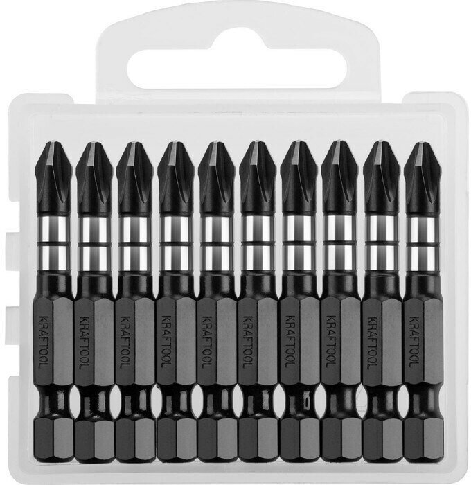 Bits KRAFTOOL Impact Pro, Philips, shank type E 1/4, PH2, 50mm, 10pcs, in a plastic box