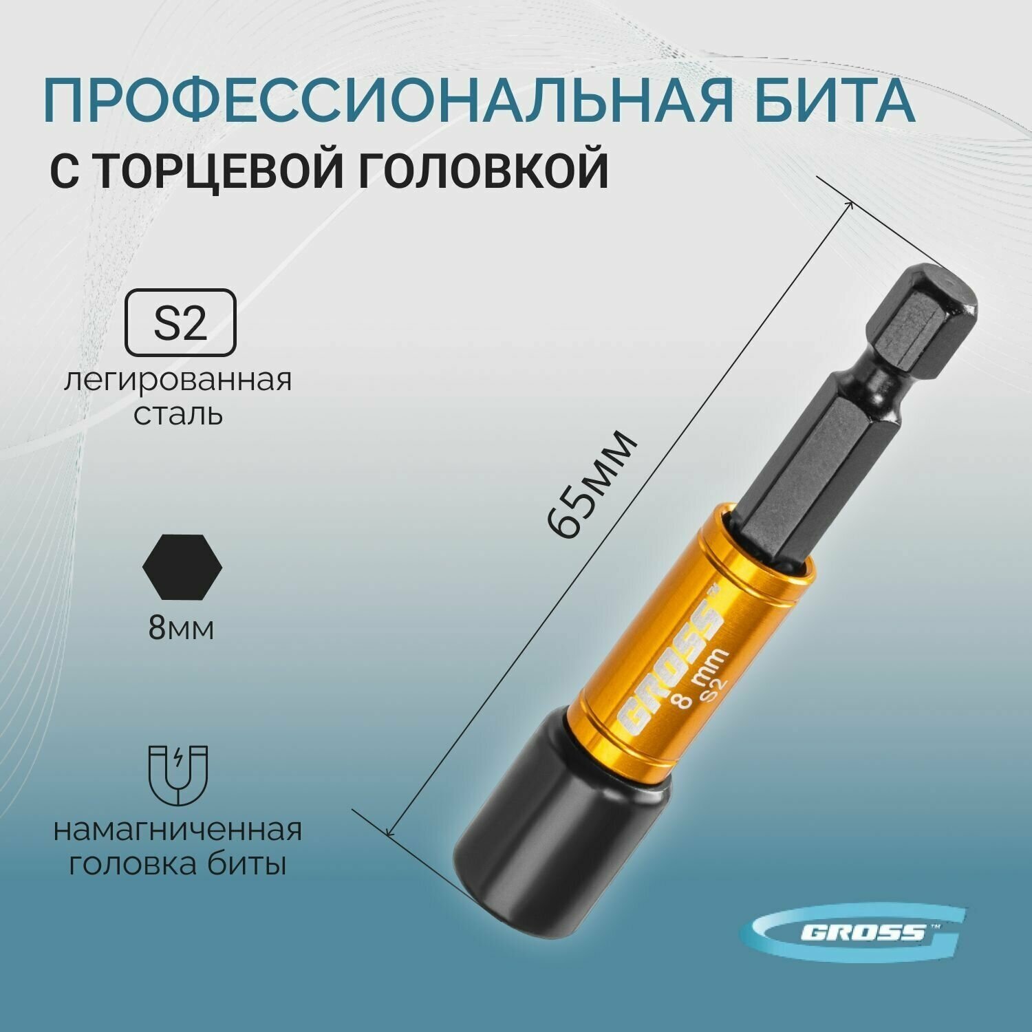 Type: bit, bit type: one-sided, tip type: M8, magnetic adapter, tip shape: hexagon, length: 65 mm