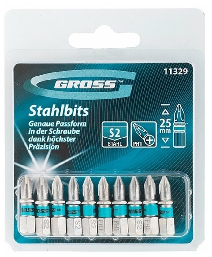 Bit set PH1x25, steel S2, 10 pcs// Gross