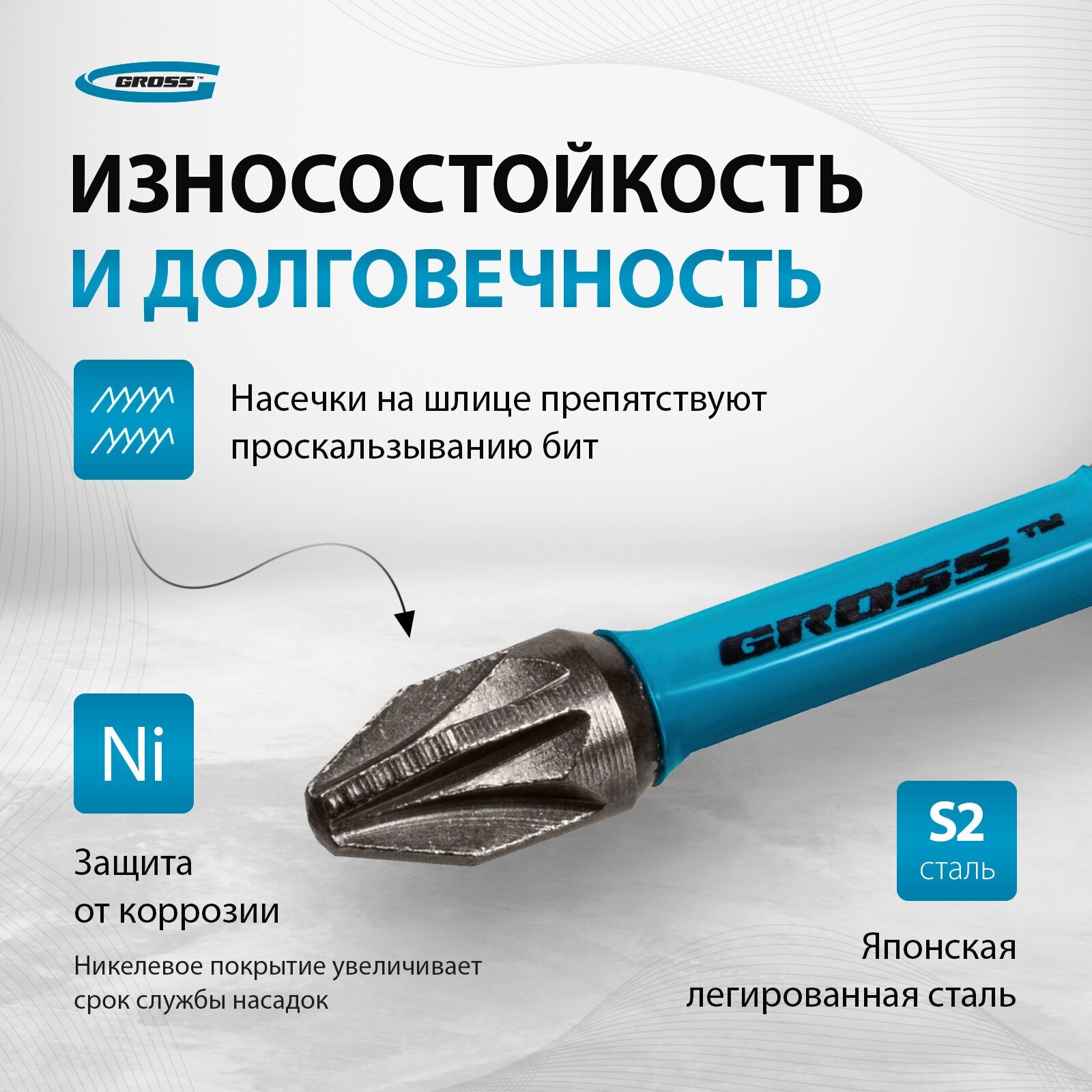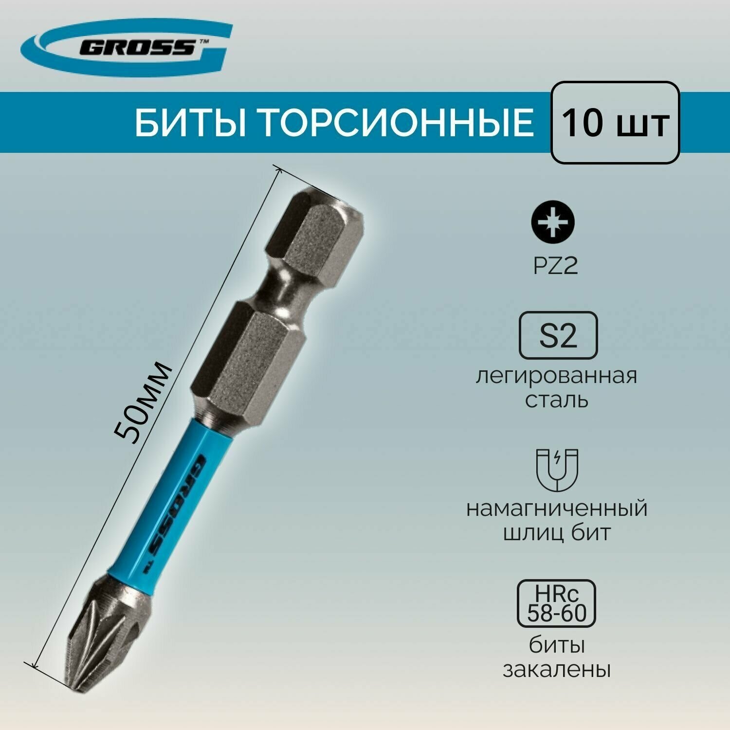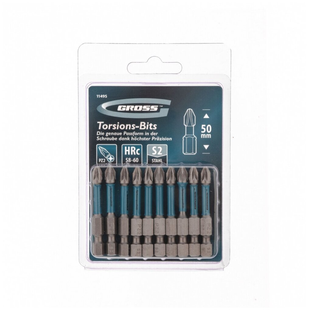 Gross torsion bit set, PZ2x50 mm, for impact drivers, 10 pieces