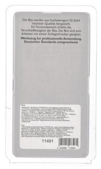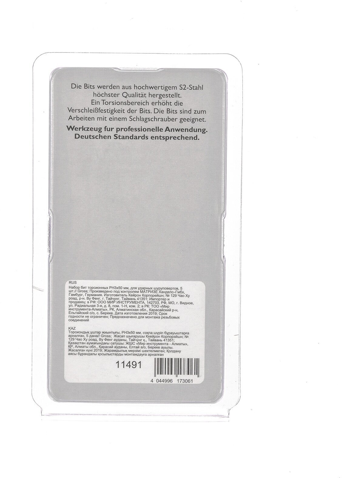 Torsion bit set PH3 x 50 mm, for impact drivers, 5 pcs. Gross