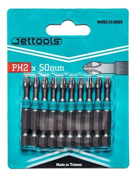 Bits PH2 50 mm Jettools magnetic for a screwdriver for hard-to-reach places, 10 pieces