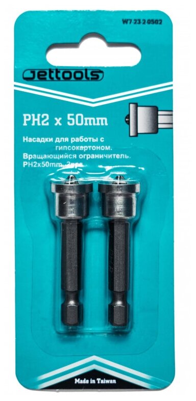 Bits PH2 50 mm Jettools with stopper for drywall, 2 pieces