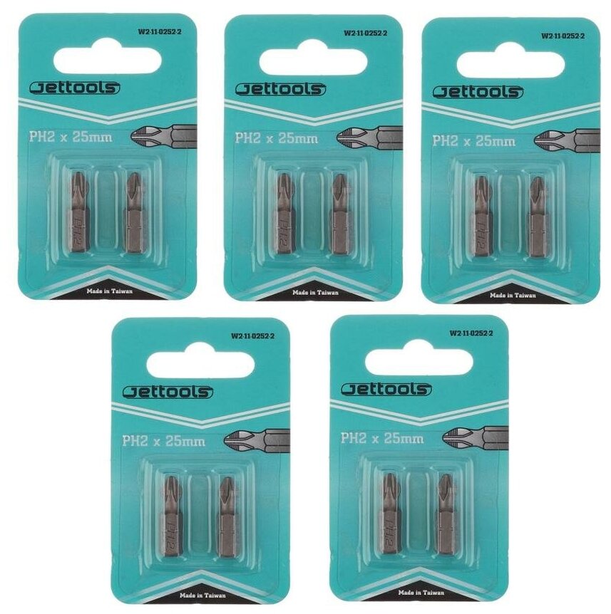 Bits PH2 25 mm Jettools magnetic for heavy duty screwdriver, 10 pieces