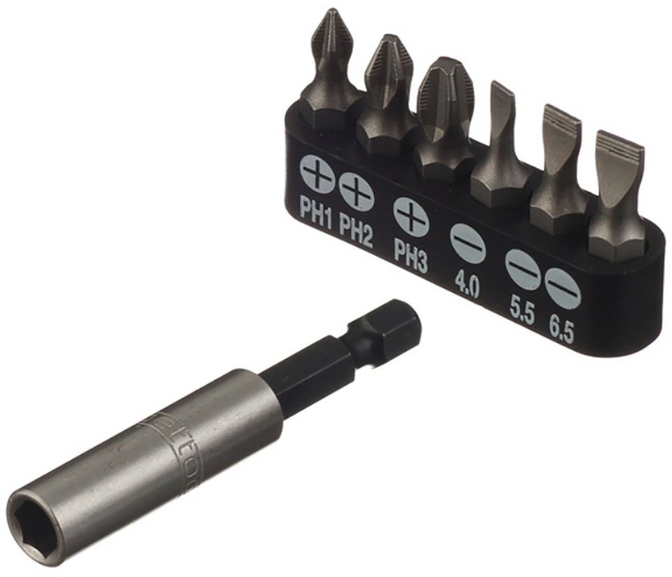 Bits in the Jettools set with a universal magnetic holder, 7 pieces