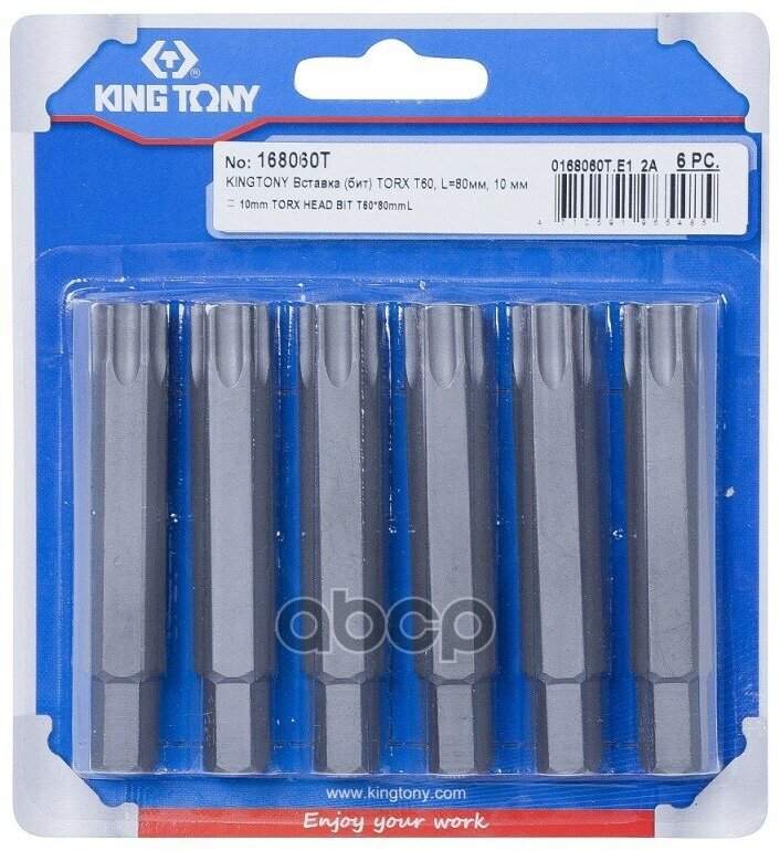 Bit insert 10 mm, TORX, Т60, L = 80 mm KING TONY 168060T