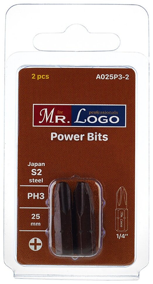 Bit PH3 x 25 mm Mr. Logo, Steel - S2, art. A025P3-2, 2 pcs.