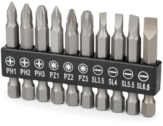 Type: rigging set, number of items: 10 pcs., rigging included: bits, accessories included: bit holder